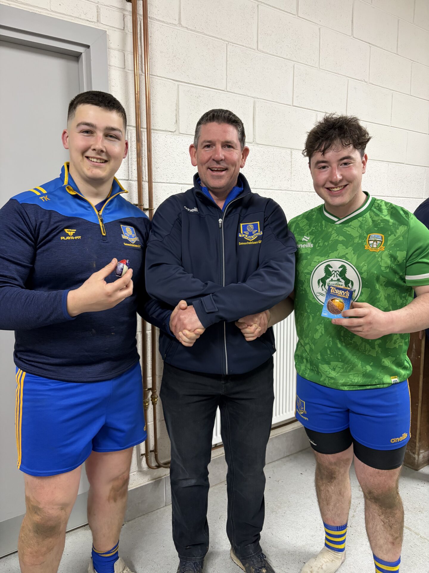 After the game, the Man of the Match award was presented to Colm McDonnell for his outstanding display between the posts, while Luke Healy got an award for bringing a friend to increase playing numbers, which did help as Seneschalstown had 18 payers togged out on the evening.